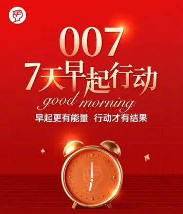 11月7日,“007不写就出局”的成长社群创始人覃杰发起了“早起更有能量,行动才有结果”的7天早起行动。当我看到这个活动时,结合自己平时的生活习惯,就毫不犹豫地报名参加了。